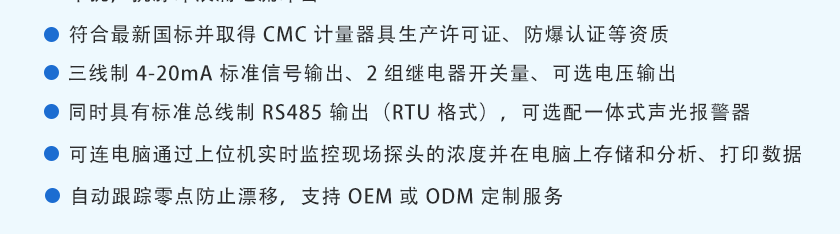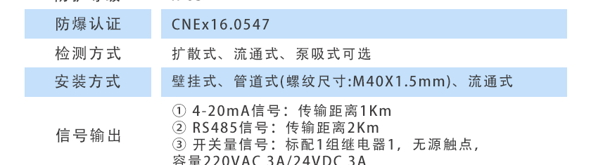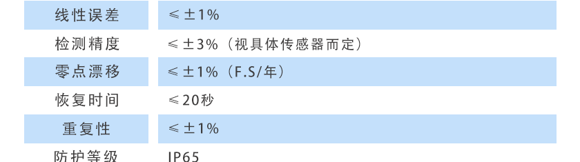 ①4-20mA信號(hào):傳輸距離1Km ②RS485信號(hào):傳輸距離2Km |