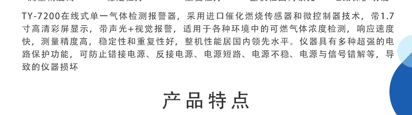 采用進(jìn)口催化燃燒傳感器和微控制器技術(shù),帶2.5寸高清彩屏實(shí)時(shí)顯示,無聲光+視覺報(bào)警,現(xiàn)場(chǎng)多種氣體濃度 24 小時(shí)連續(xù)在線監(jiān)測(cè)及溫濕度的測(cè)量,適用于各種環(huán)境中的可燃?xì)怏w濃度檢測(cè),響應(yīng)速度快,測(cè)量精度高,穩(wěn)定性和重復(fù)性好,整機(jī)性能居國(guó)內(nèi)領(lǐng)先水平。儀器具有多種超強(qiáng)的電路保護(hù)功能,可防止錯(cuò)接電源、反接電源、電源短路、電源不穩(wěn)、電源與信號(hào)錯(cuò)解等,導(dǎo)致的儀器損壞。