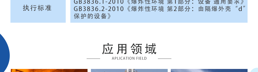 GB3836.1-2010《爆炸性環(huán)境 第1部分設(shè)備通用要求》 GB3836.2-2010《爆炸性環(huán)境 第2部分由隔爆外殼“d”保護(hù)的設(shè)備》 |