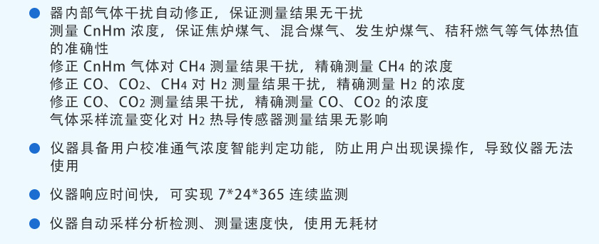 CO、CO2、CH4、CnHm :NDIR非分光紅外 H2:TCD熱導(dǎo), O2:ECD電化學(xué) |