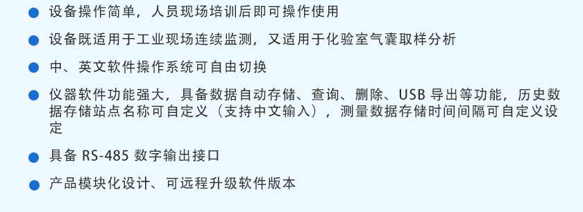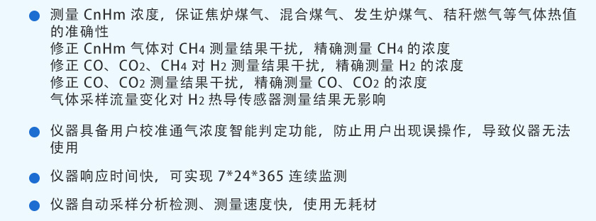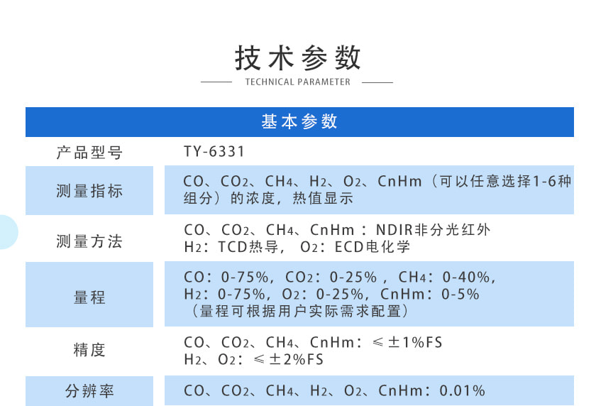 CO、CO2、CH4、CnHm :NDIR非分光紅外; H2:TCD熱導(dǎo), O2:ECD電化學(xué) |