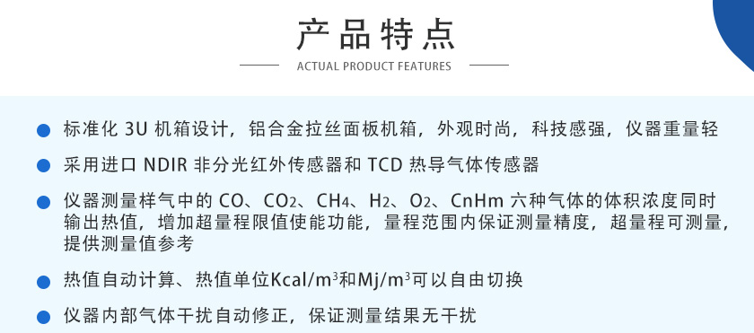 采用國(guó)際先進(jìn)的NDIR非分光紅外技術(shù)和基于MEMS的TCD熱導(dǎo)技術(shù),主要用于測(cè)量各種生物燃?xì)庵械腃O、CO2、CH4、H2、O2、CnHm?等六種氣體體積濃度及熱值。測(cè)量精度高、結(jié)構(gòu)簡(jiǎn)單、維護(hù)方便,軟件功能強(qiáng)大,可拓展性強(qiáng)、現(xiàn)場(chǎng)實(shí)用性好,目前暢銷(xiāo)國(guó)內(nèi)外。適用于生物氣化、發(fā)生爐煤氣、生物燃?xì)獾瓤扇細(xì)怏w不同成分的體積濃度和熱值。