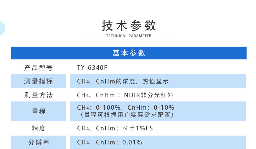 CH4:0-100%;CnHm:0-10%(量程可根據(jù)用戶實(shí)際需求配置) |