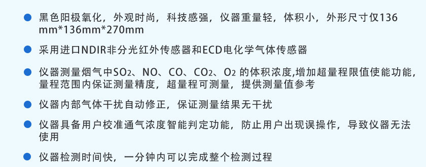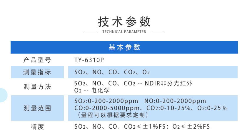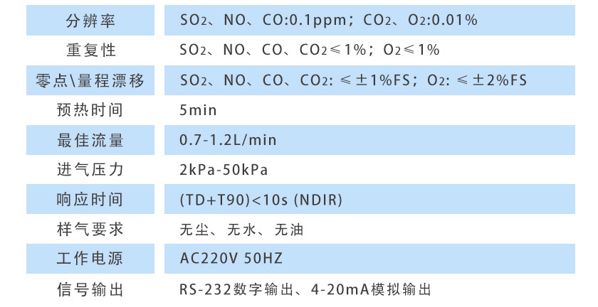 SO2、NO、CO、CO2 : NDIR非分光紅外;O2 :電化學(xué); |