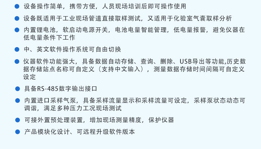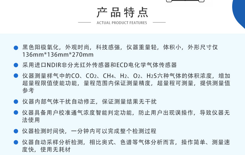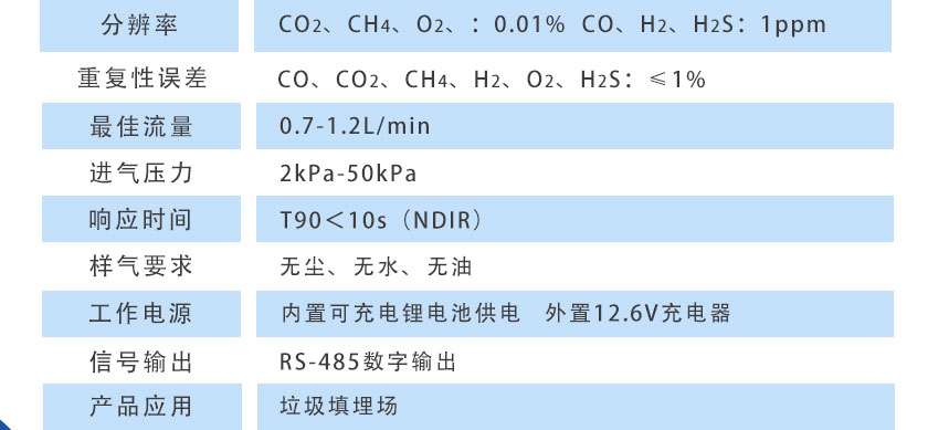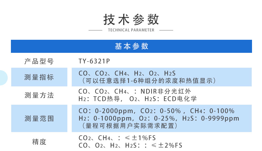 CO、CO2、CH4、:NDIR非分光紅外;H2:TCD熱導(dǎo); O2、H2S:ECD電化學(xué) |