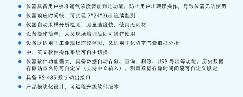采用自主知識產(chǎn)權的NDIR非分光紅外技術,主要用于測量氣體中的CO、CO2、CH4、C3H8、SO2、NO等氣體的體積濃度及熱值。全進口傳感器、測量精度高、結構簡單、維護方便,軟件功能強大,可拓展性強、現(xiàn)場實用性好,目前暢銷國內外。