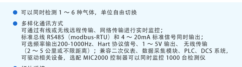 固定式安裝,在線檢測,擴散式測量,管道式、流通式、泵吸式可選 |