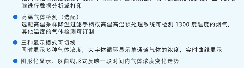 CO(0.1ppm)、H2S(0.01ppm)、O2(0.01%Vol)、Ex(0.1%LEL),更高分辨率可訂制 |