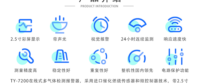采用進口催化燃燒傳感器和微控制器技術,帶2.5寸高清彩屏實時顯示,帶聲光+視覺報警,現場多種氣體濃度 24 小時連續(xù)在線監(jiān)測及溫濕度的測量,適用于各種環(huán)境中的可燃氣體濃度檢測,響應速度快,測量精度高,穩(wěn)定性和重復性好,整機性能居國內領先水平。儀器具有多種超強的電路保護功能,可防止錯接電源、反接電源、電源短路、電源不穩(wěn)、電源與信號錯解等,導致的儀器損壞。