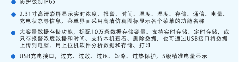 采用進(jìn)口催化燃燒傳感器和微控制器技術(shù),帶2.5寸高清彩屏實(shí)時(shí)顯示,帶聲光+視覺(jué)報(bào)警,現(xiàn)場(chǎng)多種氣體濃度 24 小時(shí)連續(xù)在線監(jiān)測(cè)及溫濕度的測(cè)量,適用于各種環(huán)境中的可燃?xì)怏w濃度檢測(cè),響應(yīng)速度快,測(cè)量精度高,穩(wěn)定性和重復(fù)性好,整機(jī)性能居國(guó)內(nèi)領(lǐng)先水平。儀器具有多種超強(qiáng)的電路保護(hù)功能,可防止錯(cuò)接電源、反接電源、電源短路、電源不穩(wěn)、電源與信號(hào)錯(cuò)解等,導(dǎo)致的儀器損壞。