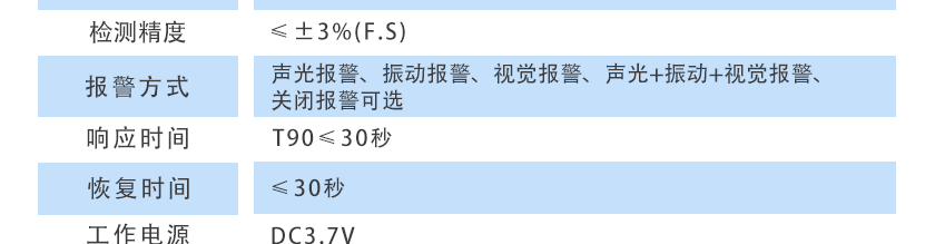 0~100%LEL、0~5%Vol、0~100%Vol可選,其他量程可訂制 |