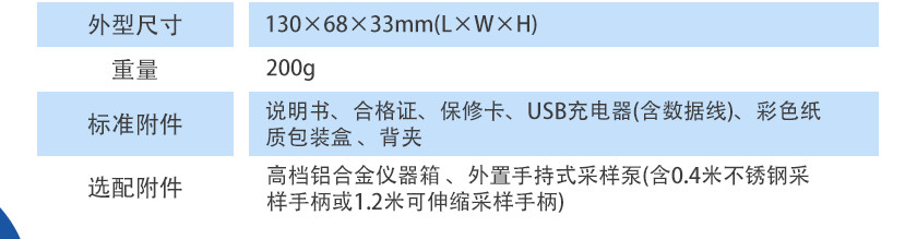 擴(kuò)散式測(cè)量,可選配采樣手柄(外置手持式采樣泵) |