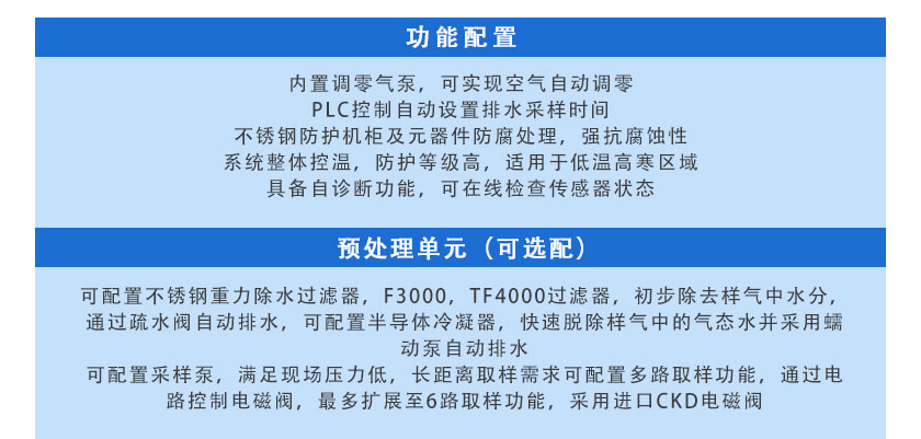 可配置采樣泵,滿足現(xiàn)場(chǎng)壓力低,長距離取樣需求可配置多路取樣功能,通過電路控制電磁閥,最多擴(kuò)展至6路取樣功能,采用進(jìn)口CKD電磁閥。 |