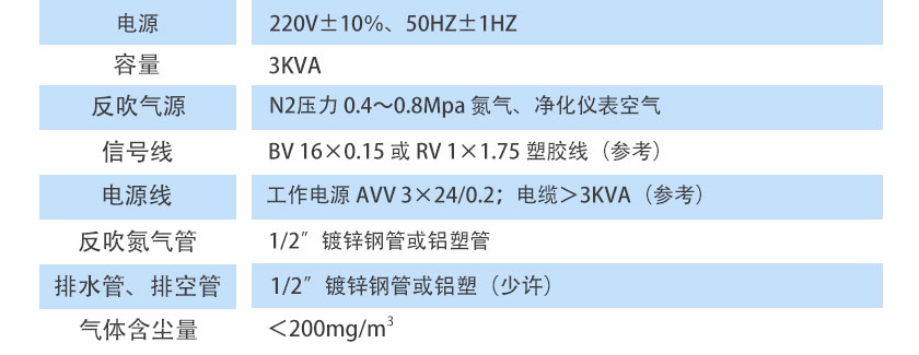 N2壓力 0.4~0.8Mpa氮氣、凈化儀表空氣 |