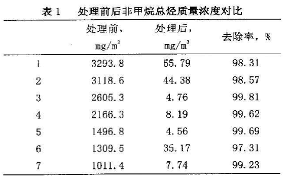 處理后非甲烷總烴質(zhì)量濃度在60mg/m2以下,去除率95%以上。
