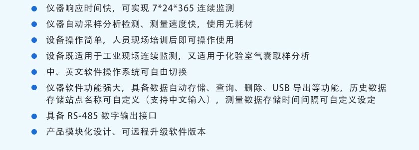 (10)設(shè)備既適用于工業(yè)現(xiàn)場連續(xù)監(jiān)測,又適用于化驗室氣囊取樣分析。